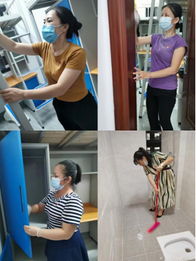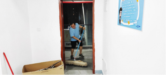 当晚,在后勤党总支全体党总支委员以及各支部书记的带领下,后勤党员及教职工不怕脏、不怕累,扫地、拖地、清理垃圾、擦拭门窗和楼梯扶手,对十三期学生公寓北苑区7、8、9层的宿舍进行了严格、仔细的打扫。