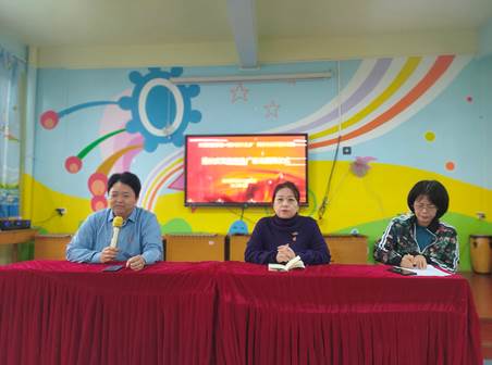 会议由幼儿园党支部李晓红书记主持,首先举行授牌仪式,由“振兴蒲织之乡”科技特派员团队项目组负责人沈晶照副教授和李晓红书记进行授牌。