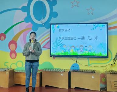 随后,杨思敏老师通过“蒲起来”项目式学习,就蒲织如何与幼儿园主题活动相结合、开展“大展身手巧编织”、“编制与时尚元素的融合”等系列活动进行现场汇报。