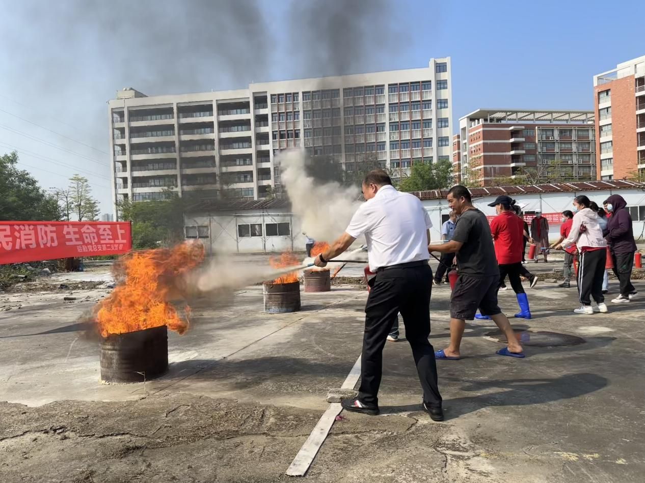 11月是全国第33个消防安全月,后勤党总支第二支部认真学习贯彻党的二十届三中全会精神和习近平总书记关于安全生产系列重要指示精神,结合本支部实际情况,为提高师生员工突发安全事故应急处理及预防能力,有效预防重特大伤亡及火灾事故的发生,确保全校师生的生命财产安全,后勤党总支第二支部联合学校安保处安防科在第五教学楼西面开展了消防安全知识培训及实战演练,后勤党总支第二支部党员、入党积极分子、近180名员工参加,由后勤党总支第二支部支部书记陈奕鹏主持指挥演练活动。