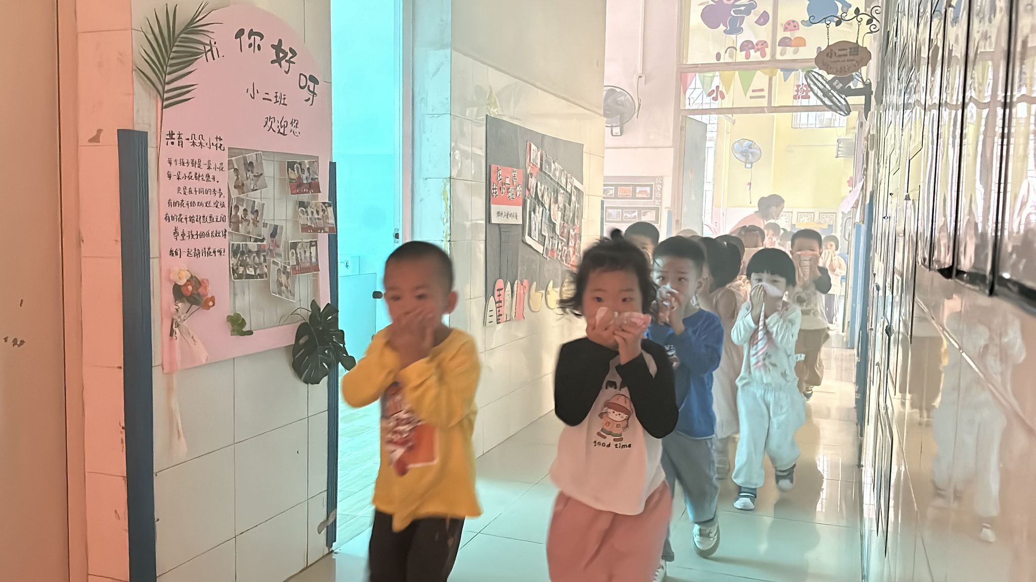 活动伊始,随着警报声的骤然响起,教学楼内浓烟弥漫,消防应急逃生演练正式拉开帷幕。全体师生迅速做出反应,孩子们在老师的引导下,用湿毛巾捂住口鼻,弯腰低姿,按照预定的疏散路线有序地撤离活动室。整个疏散过程紧张有序,仅用了短短几分钟,全体师生就安全地疏散到了指定的集合地点。