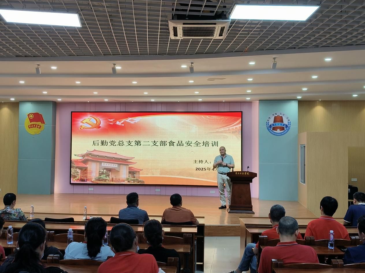 为进一步加强学校食堂食品安全管理,提升饮食中心全体员工的食品安全意识与风险防范能力,4月16日晚,后勤党总支第二支部精心组织了一场面向全体员工的食品安全培训活动。此次培训特别邀请了学校食品科学与工程学院的杨胜远教授进行“食品安全的常见危害因素及预防控制”讲课。培训由支部组织委员周岳良主持,支部书记陈奕鹏、宣传委员罗妙及饮食中心近200名员工参加。