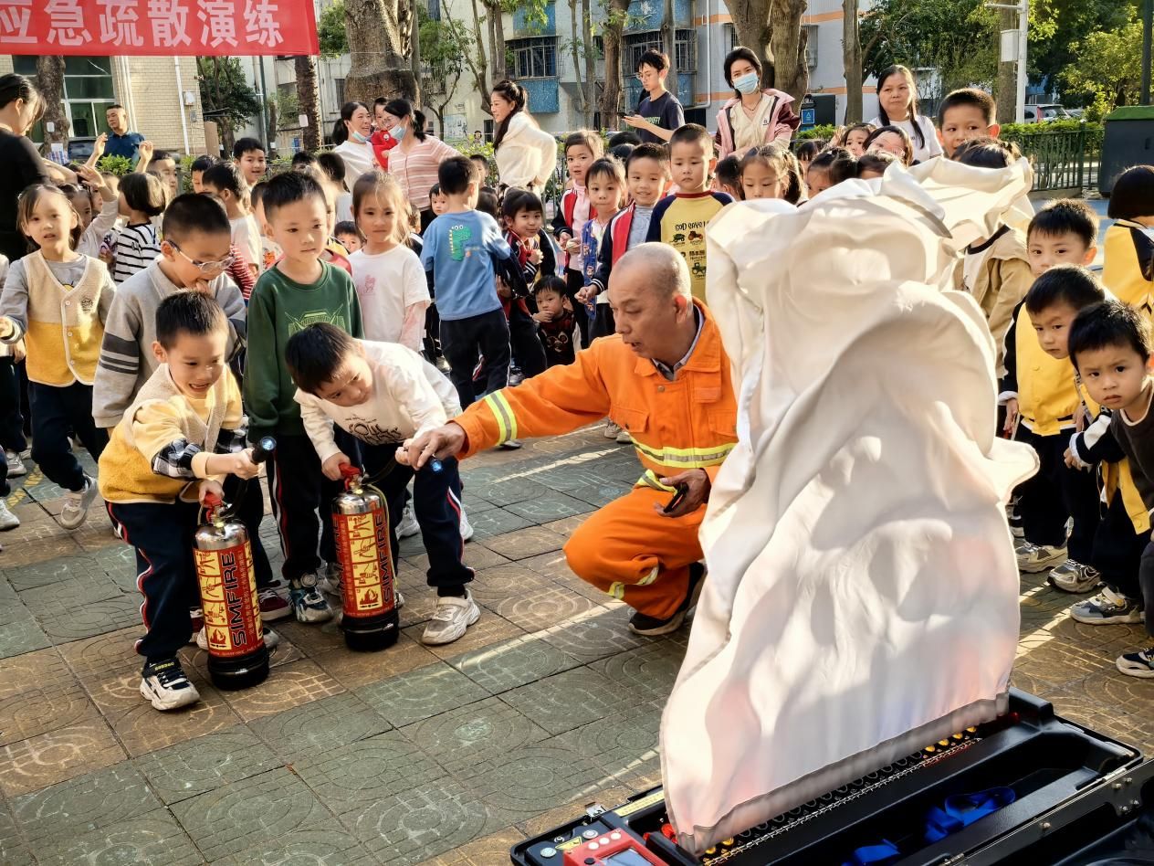 为强化校园消防安全管理,提升师生应急避险能力,近日,岭南师范学院幼儿园联合学校安保处安防科开展消防应急逃生演练,400余名师生全员参与,通过“模拟逃生+知识宣讲+实操体验+设备参观”四维模式,构建“教育+实践”的安全防护体系,筑牢校园安全屏障。
