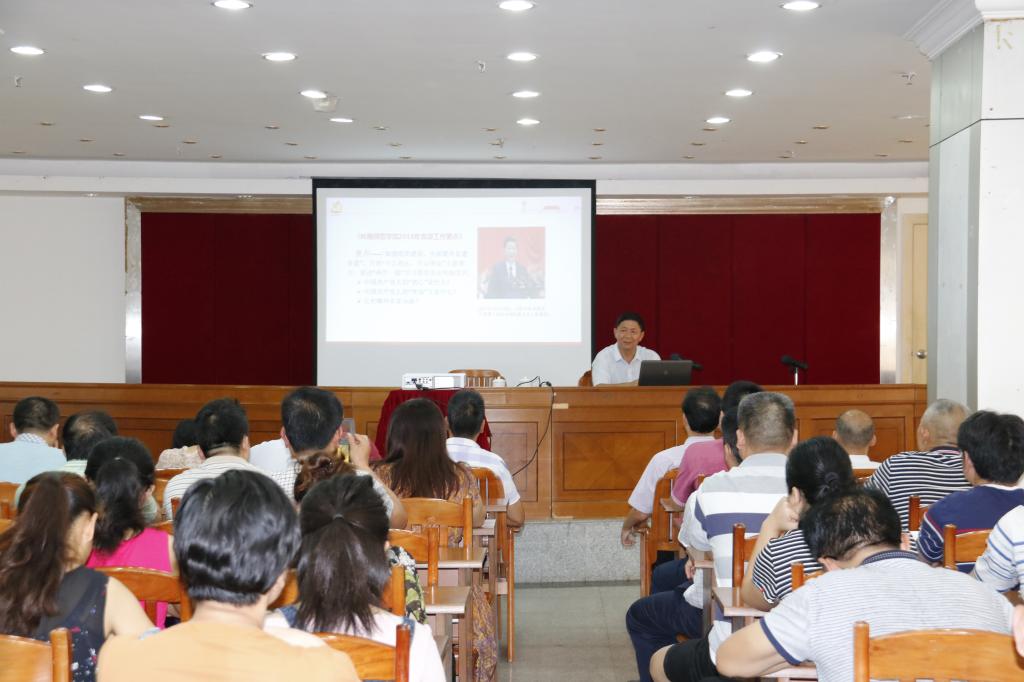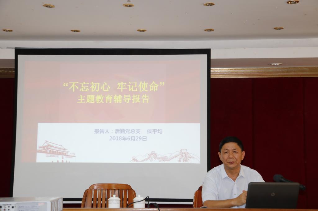 6月29日,后勤党总支以纪念中国共产党建党97周年为契机,以“不忘初心 牢记使命”为主题,由总支书记侯平均在园府酒店三楼会议室为后勤机关和各实体全体党员、入党积极分子作专题辅导报告。