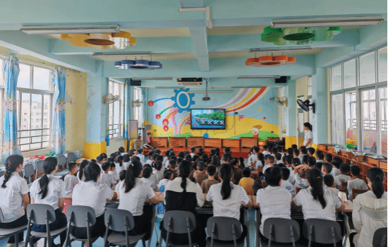 幼儿园师生集中收看九三阅兵仪式现场