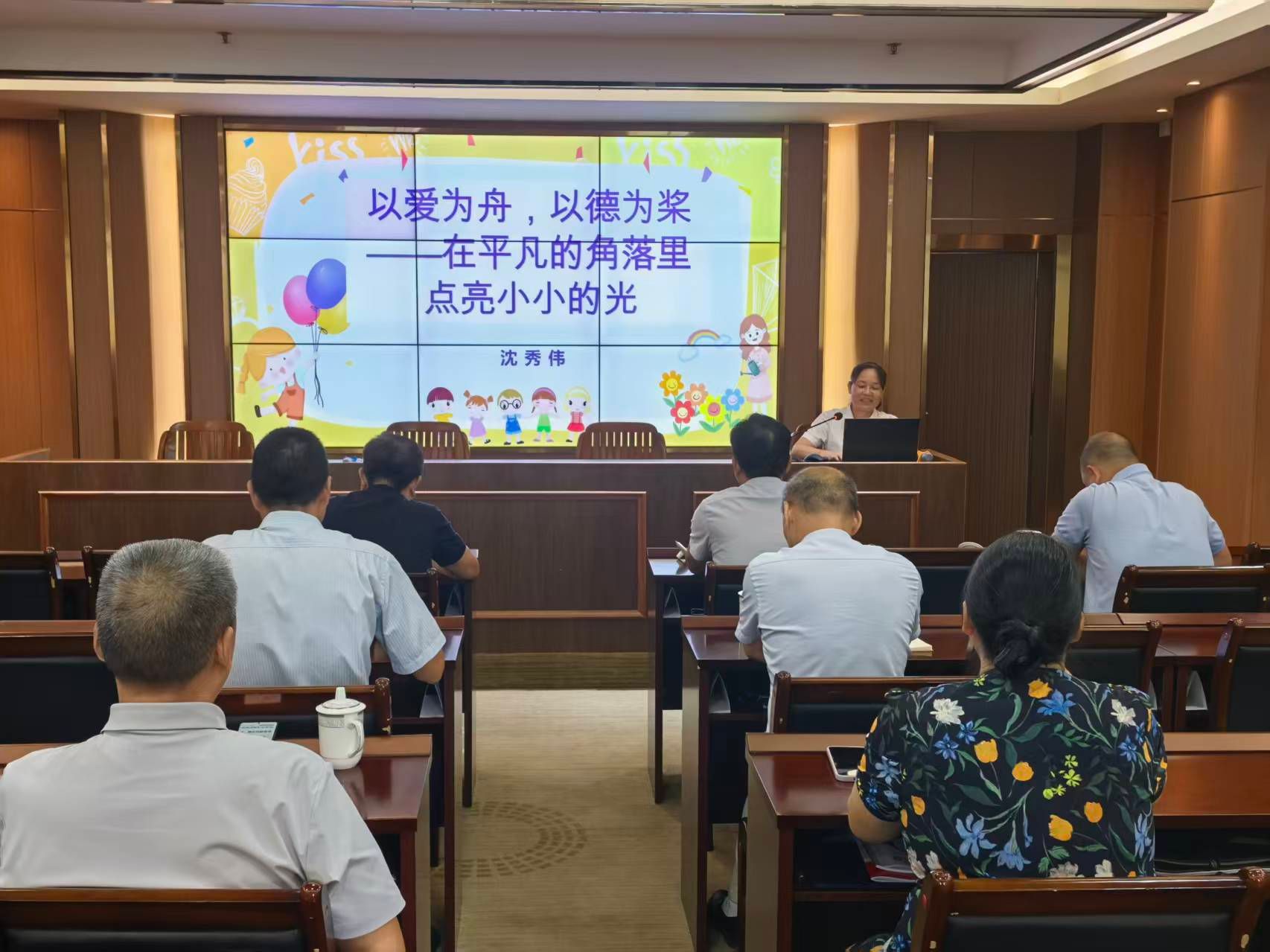 宣讲会以“以爱为舟,以德为桨”为核心主题,以爱润童心,以德铸师魂,聚焦后勤服务育人职责,旨在进一步强化后勤教职工的师德师风素养,筑牢育人思想根基。宣讲环节中,沈秀伟结合自身多年教育教学与服务师生的实践经历,讲述了日常工作中关爱学生、助力教学的暖心案例,也解读了师德建设相关制度要求,更强调后勤工作作为学校育人体系重要一环,需以优质服务传递教育温度、以高尚品德影响师生。