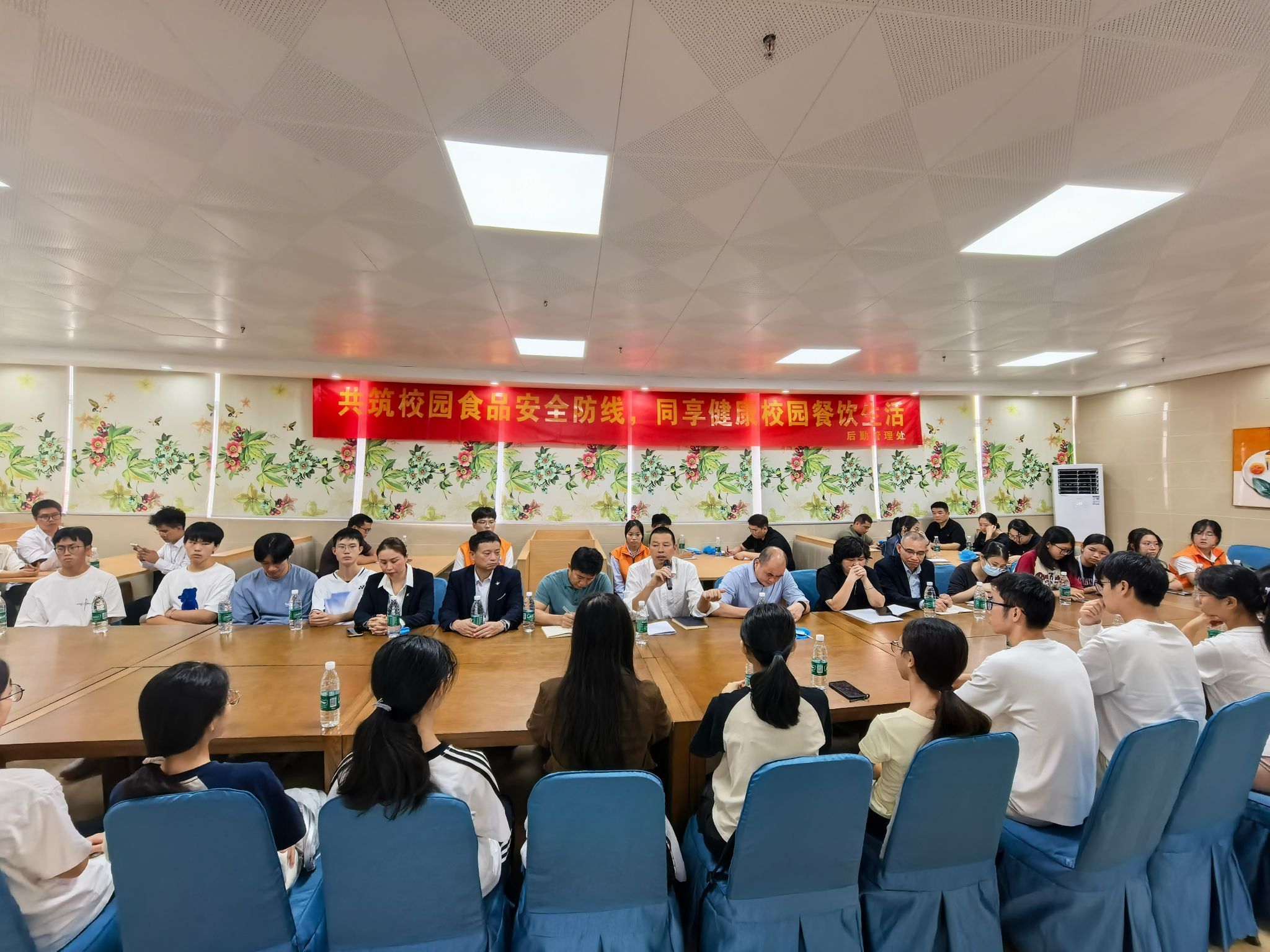 为深入贯彻校园食品安全工作要求,切实提升餐饮服务品质,畅通学校师生沟通渠道,10月31日,在后勤党总支统筹指导下,后勤管理处联合饮食中心、鹏园餐厅成功举办以“共筑校园食品安全防线同享健康校园餐饮生活”为主题的食堂开放日活动。后勤党总支书记李炳富、饮食中心总经理陈奕鹏及各食堂负责人出席,校学生会及各二级学院权益部代表共30余人参加活动。活动通过“现场观摩 + 座谈交流”的形式,让师生近距离了解校园餐饮运作全流程,为校园餐饮发展建言献策。