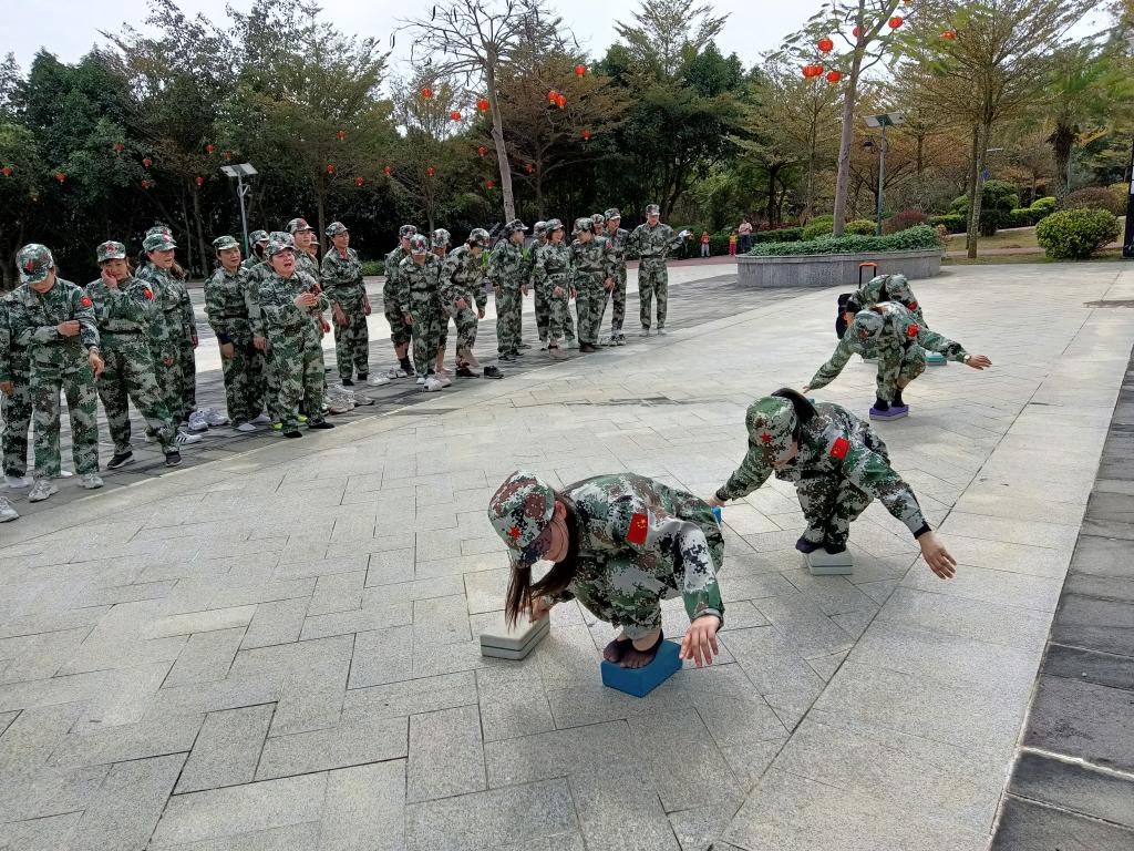 幼儿园的女职工们在教官的指挥下,从军事队列队形练习、再到拓展活动巧渡金沙江、飞夺泸定桥、军民鱼水情等,每个队员都精神饱满,积极认真地完成了每一项挑战,充分发挥了个人潜能和团队合作精神,充分展现了当代女职工积极良好的精神风貌。